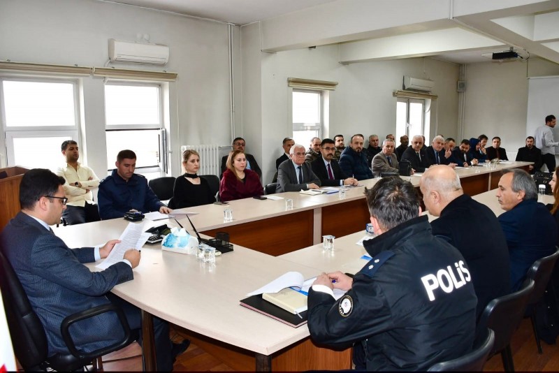Toplantıya ilgili kurum amirleri, emniyet ve jandarma yetkilileri, okul yöneticileri, okul aile birliği başkanları ile servis şoförleri katıldı. İlçedeki okullarda huzurlu ve güvenli bir eğitim ortamının sağlanması amacıyla kurumlar arası iş birliği ve koordinasyonun güçlendirilmesi ele alındı.