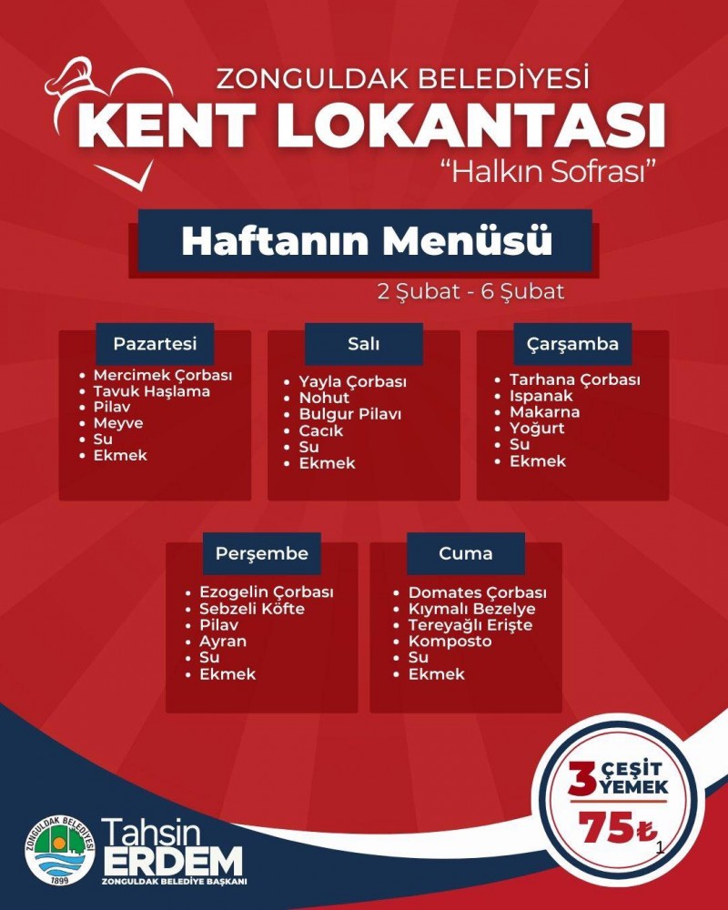 İşte Haftanın Menüsü;