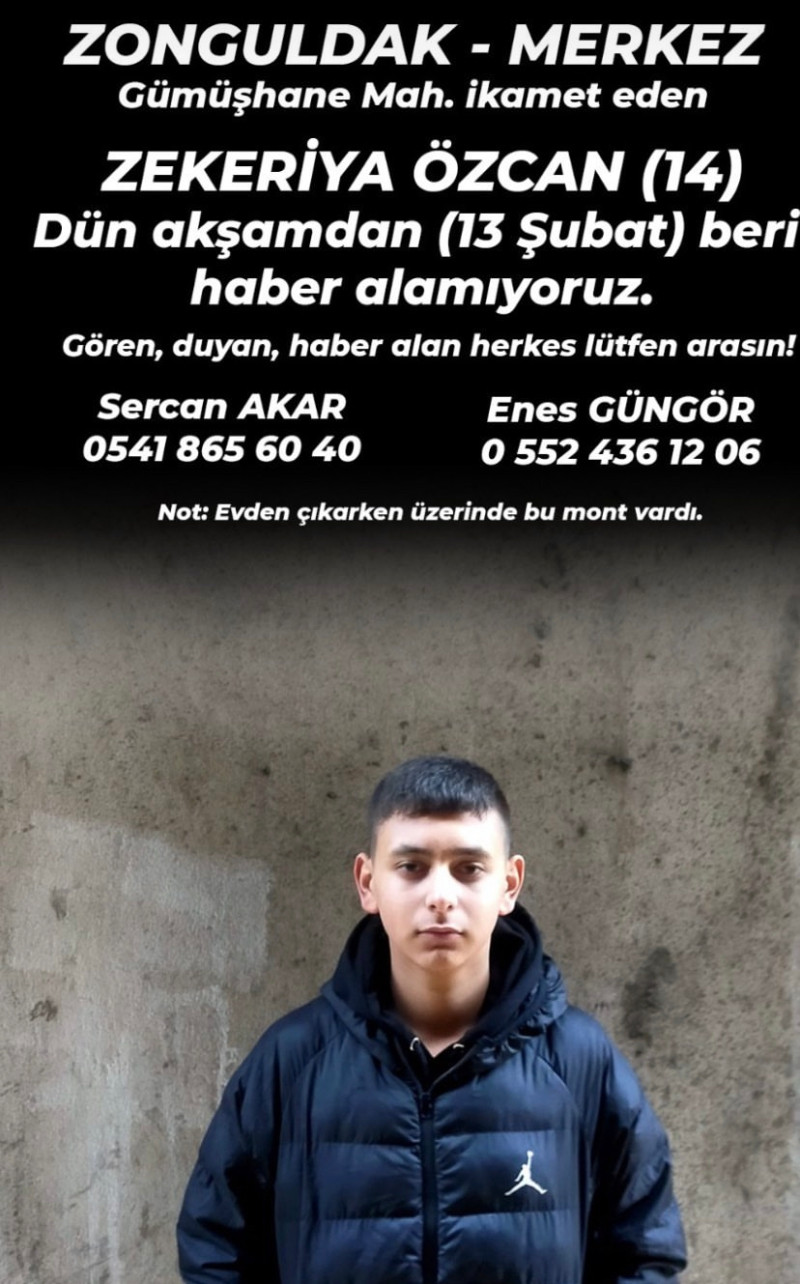 Olay dün Gümüşhane Mahallesinde meydana geldi. İddiaya göre 14 yaşındaki Zekeriya Özcan evinden çıkarak bir daha kendisinden haber alamadı. Ailesi Özcan’dan haber alamayınca haber karakola giderek kayıp ihbarında bulundu. Ekipler, aileden eşkal bilgilerini alarak arama çalışmalarını başlattı. Zekeriya Özcan isimli gencin görenler 0541 865 60 40 Sercan Akar ve 0552 436 12 06 Enes Güngör’den ailesine ulaşabilir.